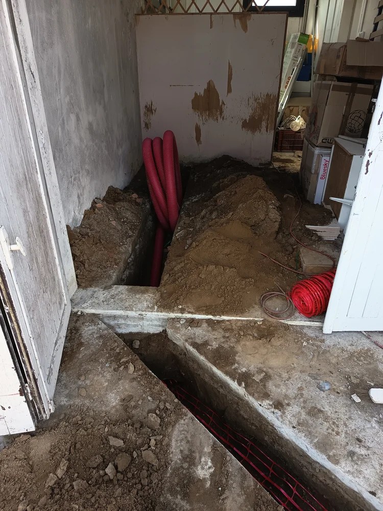 Chez BJA Terrassement, nous sommes fiers d'annoncer la réalisation récente d'une tranchée le long d'une maison et dans un garage pour le passage d'une gaine de diamètre 90 mm, essentielle au raccordement électrique vers le compteur. Ce projet, situé à Dax, témoigne de notre expertise en terrassement et en rénovation extérieure.